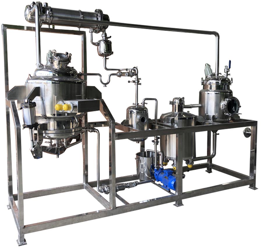 至沸騰20~30分鐘后,用抽濾管將1/3提取液抽入濃縮器。關閉提取罐直通和夾套蒸汽、開啟加熱器閥門使液料進行濃縮。濃縮時產生二次